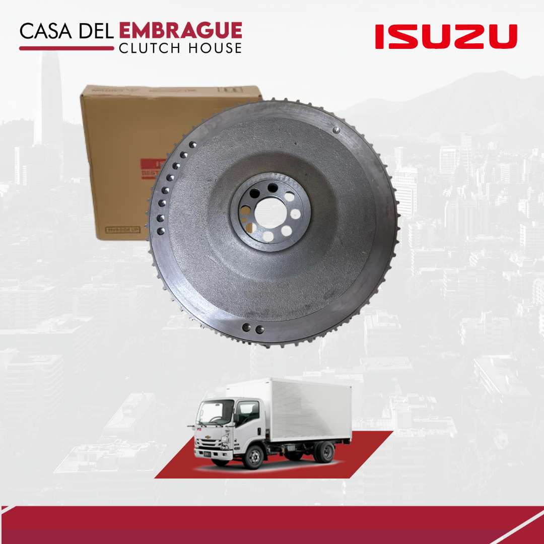 Volante de motor compatible con Chevrolet NPR equipado con motor Isuzu 4HK1 5.1 y 5.2, diseñado para sistemas de embrague de alto torque en aplicaciones de trabajo pesado y uso comercial.